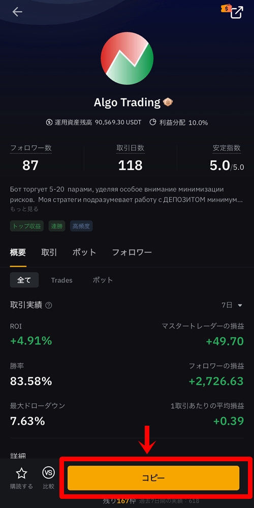 最大ドローダウンが10%未満なので、無茶な取引はしないであろうと思われる方を選びました。